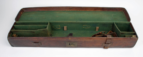A SINGLE LEATHER GUNCASE, suitable for 30in barrels, lined with green baize Estimate £30-50