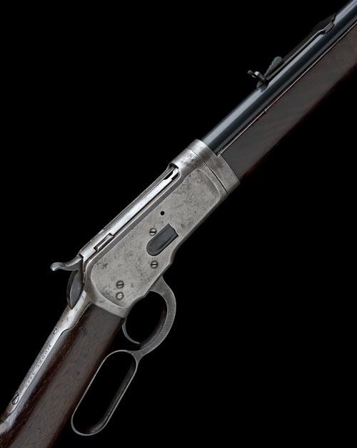for 1910, with round 24 1/4in. barrel, dove-tail blade fore-sight, buckhorn rear-sight, the barrel signed 'MANUFACTURED BY THE WINCHESTER REPEATING ARMS CO. NEW HAVEN CONN, USA. PATENTED OCTOBER 14. 1884', plain receiver, the top-tang marked ''MODEL 1892 WINCHESTER TRADE MARK REG IN US PAT OFF.', straight-hand butt-stock with crescent heel-plate, plain fore-end with iron nose-cap and full-length under-barrel magazine with take-down lever at muzzle