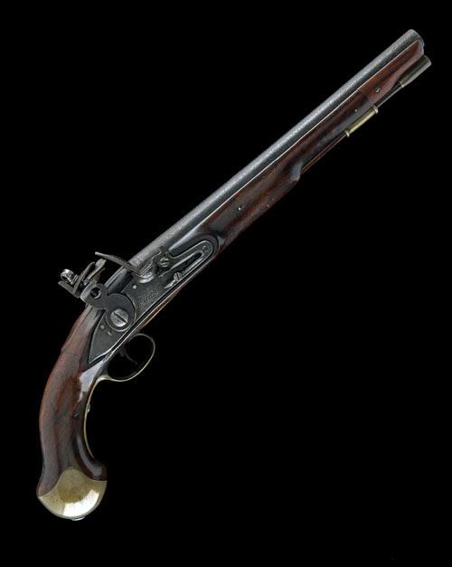 AN EARLY 20-BORE FLINTLOCK SINGLE-SHOT HORSE-PISTOL, no visible serial number,