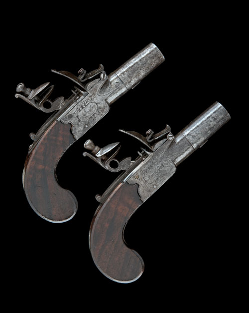 WILLIAMS, LONDON A PAIR OF 38-BORE FLINTLOCK BOXLOCK POCKET-PISTOLS, no visible serial numbers,