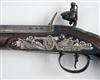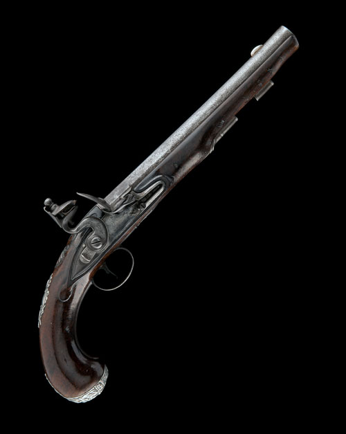 AN 18-BORE FLINTLOCK SILVER-MOUNTED SINGLE-SHOT PISTOL, no visible serial number,