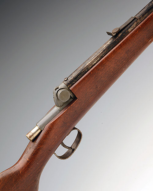 AN UNUSUAL .177 PNEUMATIC AIR-RIFLE, MODEL SWEDISH EXCELLENT, no visible serial number, circa 1970, with 22 1/2in. sighted barrel, receiver with rotary alloy tap to rear, plain beech pistol-grip half-stock and pull-forwards pump action, traces of finish, action at fault