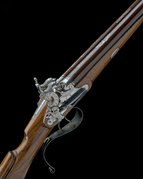 BARRENECHEA, EIBAR A FINE CASED 16-BORE PERCUSSION DOUBLE-BARRELLED SPORTING GUN IN THE CATALAN STYLE, no visible serial number,