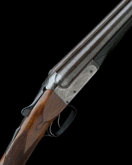 26in. nitro reproved damascus barrels (in 2011), rib engraved 'WM. CASHMORE. MAKER. BIRMINGHAM.', 2 1/2in. chambers, bored approx. 1/2 choke in both, wall thicknesses circa 20, treble-grip action with hidden third bite, floral engraved fences, automatic safety, fine acanthus scroll engraving, brushed bright and reblued finish, triggers set for the left hand, 15in. slightly cast on replacement stock including 3/4in. rubber recoil pad, bolstered fore-end wood (slight shrinkage), weight 5lb. 9oz.