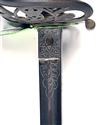 circa 1870, with slightly curved 32 1/2in. blade, etched for the first two-thirds of its length with floral scrolls, a Victorian crown, cypher and infantry bugle and marked 'VOLUNTEER RIFLES', makers mark etched at ricasso, inlaid proof-mark, iron half-basket with Rifle Regiment bugle and crown, iron backstrap and pommel, sharkskin wire-bound grip TOGETHER WITH its iron scabbard (stained with mild pitting)