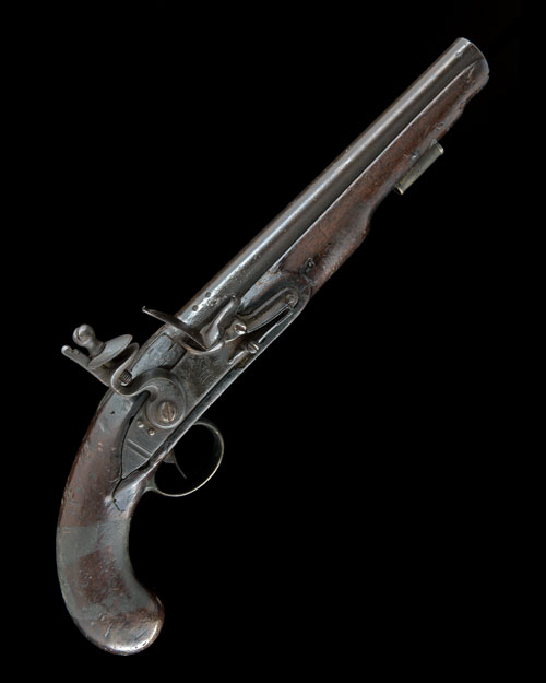 A 13-BORE FLINTLOCK SINGLE-SHOT SERVICE PISTOL SIGNED BRASHER, no visible serial number,