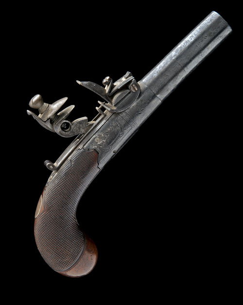 A 40-BORE FLINTLOCK BOXLOCK POCKET-PISTOL, no visible serial number,