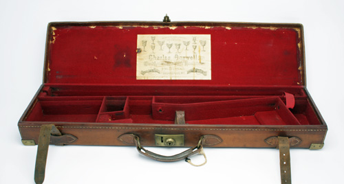 CHARLES BOSWELL A BRASS-CORNERED LEATHER HAMMERGUN CASE,