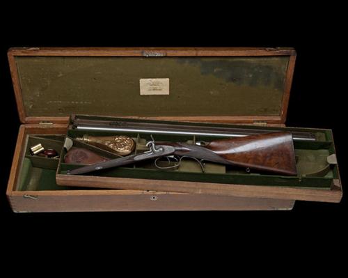 A CASED 16-BORE PERCUSSION DOUBLE-BARRELLED SPORTING RIFLE, serial no. 364,