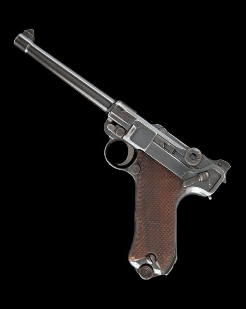 circa 1908, with 6in. blued sighted barrel, sliding adjustable rear-sight to toggle-action marked to 200m, receiver with German Naval acceptance marks, chequered wood grips, the back-strap cut for a shoulder-stock and complete with its correct Naval-type wood-based magazine, all matching numbers except un-numbered magazine, the whole with much original but lightly frosted blue and fair traces of original straw finish (additional registration number under barrel)