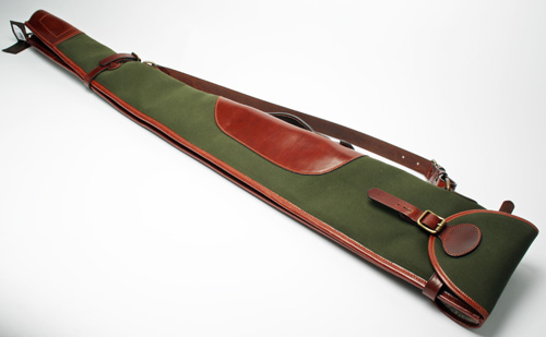 REY PAVON A NEW AND UNUSED GREEN CANVAS AND LEATHER FLEECE LINED DOUBLE GUNSLIP,