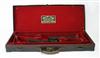 A BRASS-CORNERED LEATHER DOUBLE GUNCASE,