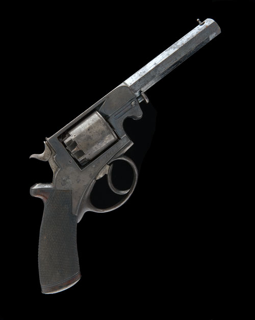 A 54-BORE PERCUSSION FIVE-SHOT DOUBLE-ACTION REVOLVER SIGNED TRANTERS PATENT, MODEL BEAUMONT-ADAMS, serial no. 21814T,