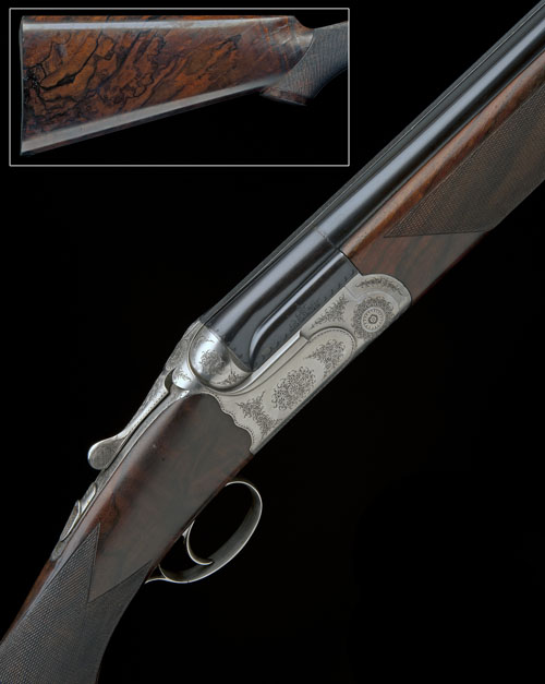 29 1/4in. nitro reproved barrels with 6mm raised matt top-rib, 2 3/4in. chambers, Teague multichokes (with spares), breech end signed 'W.R. Saleri Armi Italy', rounded bar, hold-open toplever, automatic safety, fine acanthus scroll engraving, the underside engraved 'ALEX MARTIN', the triggerplate signed 'Boe D', bright finish overall, 15 1/8in. highly-figured stock with Prince of Wales grip, weight 7lb. 4oz.