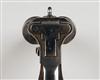 German, dated for 1942 and of the type associated with the U-Boats, with polished aluminium stepped breech 9in. barrels, long receiver with top, centrally mounted three-position selector, the central position marked 'DOPPEL-SCHUSS', polished aluminium frame marked with an eagle-swastika and 'M' with 'III/3' also 'AC42', side-mounted safe, two-piece chequered walnut grips and under-lever opening forwards of the trigger-guard (missing fore-end wood)