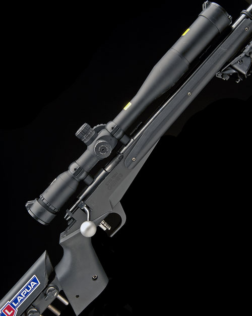 281/2in. nitro barrel retaining sight blocks, rubber 'O' ring tuners, the receiver mounted with a Hawke Sidewinder 30 Tactical 10x42 telescopic sight, System Gemini synthetic stock with fully adjustable butt, two stage trigger, Harris bi-pod, with original alloy telescopic sight case with instructions and with bolt keeper