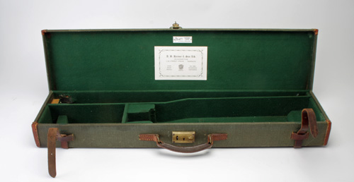 A BRADY CANVAS & LEATHER SINGLE GUNCASE, 30 1/2in. nitro barrel, suitable for an over & under, the interior lined with green baize, brass lock (key missing), the lid interior with a 'A.B. BARBEY & SON LTD' trade label