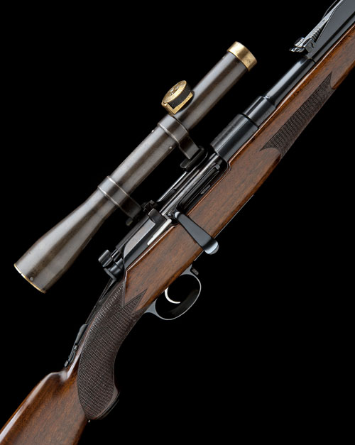 23in. nitro reproved barrel with ramp-mounted bead fore-sight, rear tangent sight, the receiver engraved 'PATENT MANNLICHER SCHOENAUER M.1903' on a stippled background, with a Busch A-G ..athenow '..sar' 2 3/4x telescopic sight (...ehr No. 1501d, inscription partially obscured) engraved 'ALEX MARTIN GLASGOW & ABERDEEN' fitted in quick detachable side mounts, the hand fitted with a flip-up peep sight, figured pistolgrip stock with cheekpiece, sling swivels, 14 1/2in. pull including grooved buttplate, TOGETHER WITH additional scope side-mount with 1in. split rings, in a wooden case