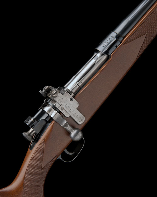 23 1/2in. nitro barrel engraved 'R.F. SEDGLEY. INC. PHILA. PA. U.S.A.', with ramp-mounted blade fore-sight, receiver ring stamped 'U.S. ROCK ISLAND ARSENAL MODEL 1903', sidewall tapped, fitted with a Lyman adjustable vernier peep sight, replacement pistolgrip stock with cheekpiece, 14 1/4in. pull including 3/4in. ventilated rubber recoil pad, TOGETHER WITH its original Sedgley pistolgrip stock with barrel band, together with original Ajack quickly-detachable side mount