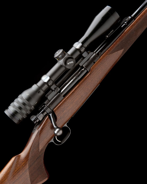 24in. nitro barrel with ramp-mounted bead fore-sight, open rear-sights, fitted with a Kassnar 3-9x telescopic sight, three-position wing safety, pistolgrip stock with sling swivels, 13 3/4in. pull including steel buttplate