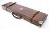 A BRASS-CORNERED OAK AND LEATHER SINGLE GUNCASE,