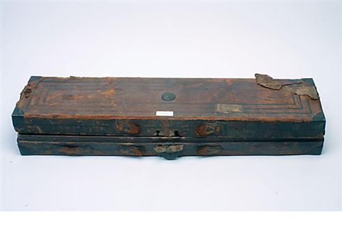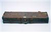 A SINGLE LEATHER BIG-BORE GUNCASE / DOUBLE RIFLE CASE, fitted for 32in. barrels, the interior lined with green baize, lock needs repairs,