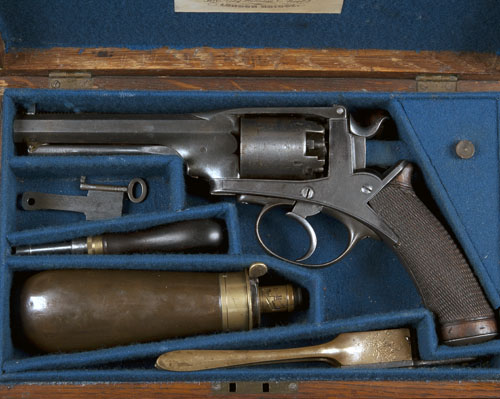 A CASED 54-BORE PERCUSSION FIVE-SHOT DOUBLE-ACTION REVOLVER, MODEL 'DEANE-HARDINGS PATENT', serial no. 6950L,