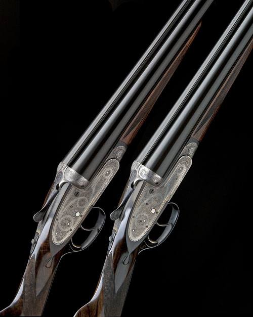 A PAIR OF PIETRO CASTIGLIONE-ENGRAVED 12-BORE SELF-OPENING SIDELOCK EJECTORS, serial no. 0013 / 4,