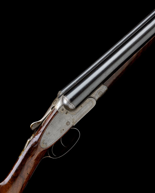 circa 1894, 30in. replacement nitro reproved barrels (in 2013, partially struck off), the rib engraved 'W. LEECH & SONS. CHELMSFORD.', 2 3/4in. chambers, bored approx. 1/4 and full choke, treble-grip action with Scott patent gas check system, patent no. 617 of 1882, use number 5583, automatic safety with gold-inlaid 'SAFE' detail, incorporating combination of J. Deeley 1884 patent ejector, patent no. 14526, use number 208 and Perkes 1886 patent ejector mechanism, patent no. 10679, use number 796, cocking-indicators, beaded border engraving, 13 5/8in. stock, fore-end wood chipped, weight 6lb. 11oz.