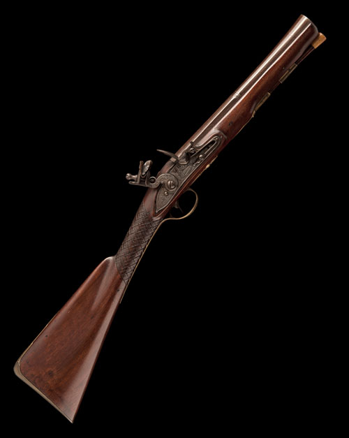 GARRETT, LONDON A 28-BORE FLINTLOCK BLUNDERBUSS OF SMALL SIZE, no visible serial number,