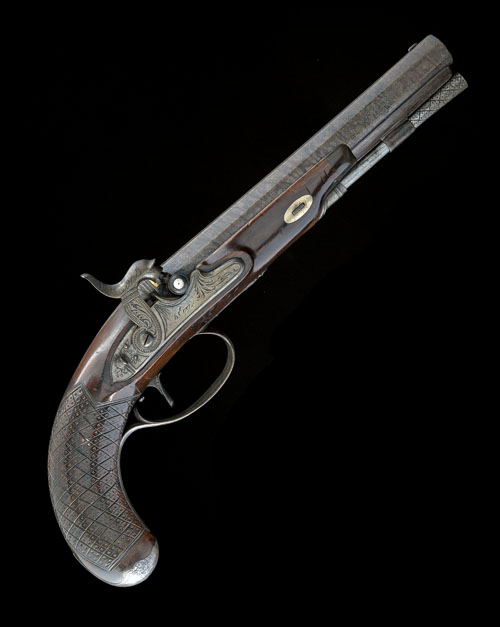 A 28-BORE PERCUSSION SINGLE-SHOT DUELLING PISTOL, no visible serial number,