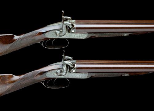 A PAIR OF 12-BORE PERCUSSION DOUBLE-BARRELLED SPORTING-GUNS, serial no's. 3035 & 3036,