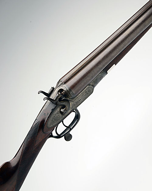 R.T. WATSON 10-BORE (2 5/8IN.) DOUBLE-BARRELLED ROTARY-UNDERLEVER WILDFOWLING HAMMERGUN, serial no. 4578, serial no. on under-rib only, 30in. damascus barrels, the rib engraved 'R.T. WATSON. 97 CLAYTON ST. NEWCASTLE ON TYNE.' and with a flash of scrollwork at the breech end, Jones patent rotary underlever, carved percussion fences, rebounding sidelocks, border and partial scroll engraving, 14 1/2in. stock including buttplate