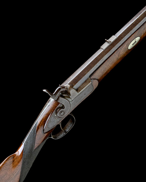 A 12-BORE PERCUSSION SINGLE-SHOT SPORTING-RIFLE, UNSIGNED, no visible serial number,
