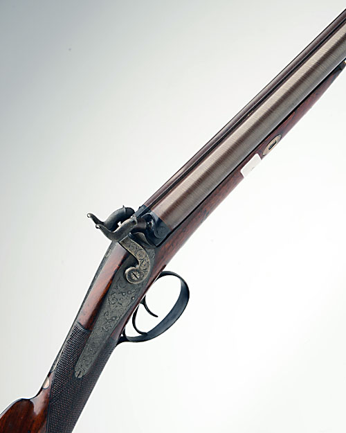 A 16-BORE PERCUSSION DOUBLE-BARRELLED SPORTING-GUN SIGNED D. EGG, no visible serial number,