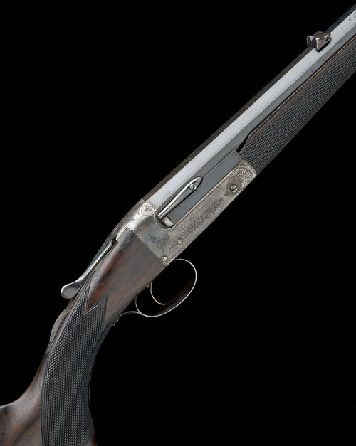 26in. nitro reproved octagonal barrel, Parkerifled to .22LR from .250 rook, barrel with partially matted top flat and engraved 'A.J. JEWSON. HALIFAX.', open sights and two folding leaf sights with white metal sighting lines and marked for 50, 100 and 150 yards, bead fore-sight, removable striker disc, automatic safety, non-selective ejector, border and acanthus scroll engraving, retaining traces of colour-hardening and finish, 14 1/2in. pistolgrip stock with engraved and colour-hardened pistolgrip-cap, fore-end with horn finial, weight 5lb. 8oz.
