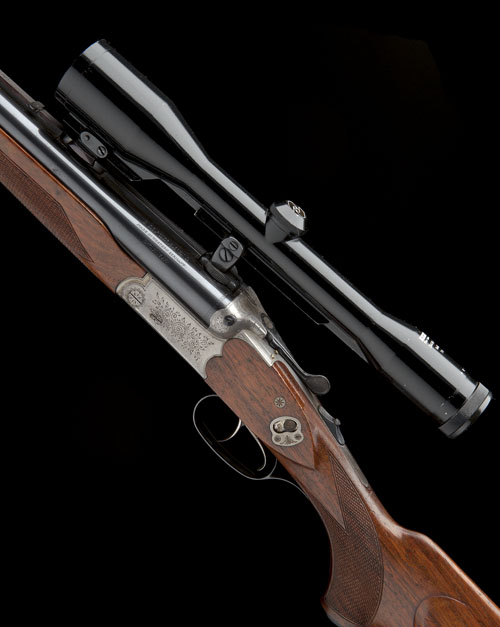 25in. nitro barrels with matt rib, blade fore-sight, flip-up rear open sight, the breech end fitted with a Zeiss Diatal-Z 6x42 T* telescopic sight in rapidly undeployable mounts, 2 3/4in. shot chambers, bored approx. 1/4 and full choke, scroll-back treble-grip action with sideclips, cocking indicators, shot / ball selector switch, manual side safety, set front trigger, 14 1/2in. hogsback pistolgrip stock including buttplate, sling swivels, pistolgrip cap, weight 8lb. 11oz. (including scope)