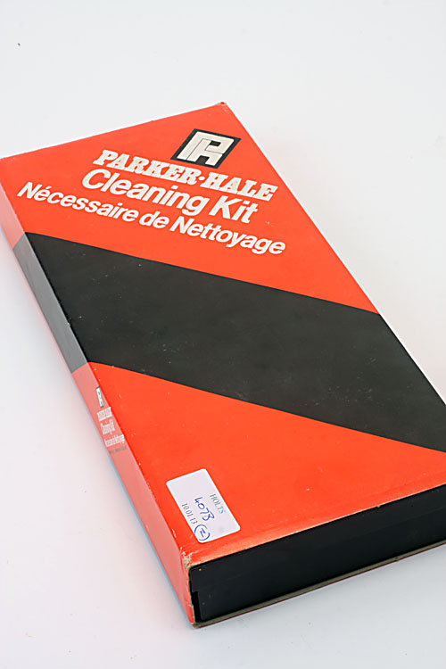 AN UNUSED PARKER-HALE GUN CLEANING KIT, A LEATHER CARTRIDGE BAG
