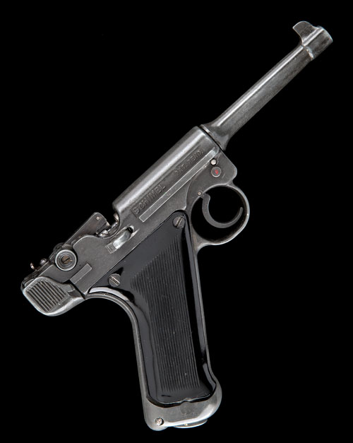 for 1953, in loose imitation of a Luger 'P08' service pistol, die-cast construction with single-shot toggle action, rare 'P22' marking cast in receiver, safety catch forwards of the trigger, aperture for carbon dioxide bulb in the grip, brown bakelite grooved grips, finish original but faded