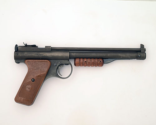 A .177 MULTI-PUMP PNEUMATIC AIR-PISTOL SIGNED BENJAMIN FRANKLIN, MODEL 137, no visible serial number,
