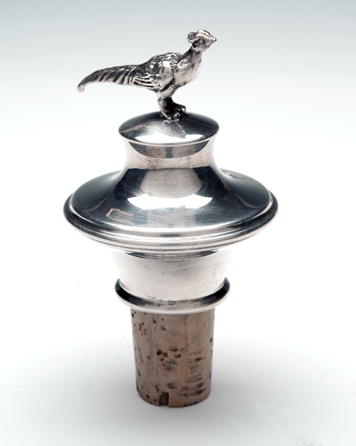 A STERLING-SILVER WINE-BOTTLE STOPPER IN THE FORM OF A PHEASANT,