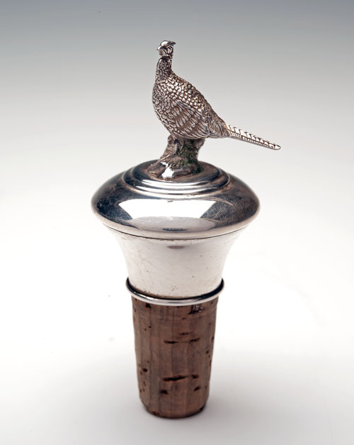 A STERLING-SILVER WINE-BOTTLE STOPPER IN THE FORM OF A PHEASANT,
