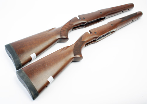 TWO BOLT-ACTION RIFLE STOCKS, with semi-pistolgrips, chequered fore-ends and grips, rubber recoil pads (2)