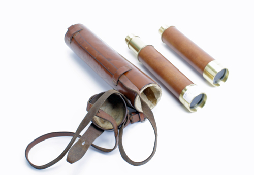 TWO LEATHER BOUND JAPANESE BRASS TELESCOPES, 1 x leather case