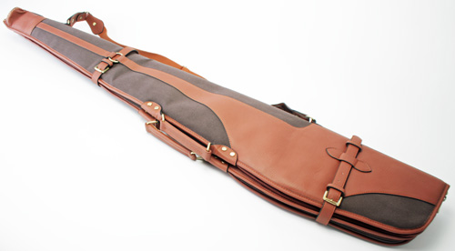 A NEW & UNUSED CANVAS & LEATHER FLEECE LINED DOUBLE GUN/RIFLE SLIP
