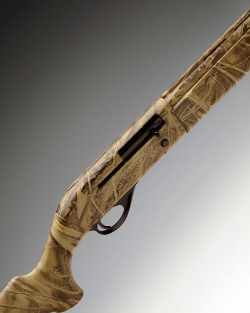 A LITTLE-USED WEBLEY & SCOTT 20-BORE (3IN.) 'MODEL 820' SEMI-AUTO SHOTGUN, serial no. TRAN081539, 28in. nitro barrel with raised ventilated rib, 3in. chamber, multichoke (with spares), synthetic stock, the whole covered in a camouflage-effect finish, in its makers universal case