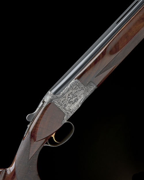 32in. nitro barrels with 8mm ventilated matt top-rib, 2 3/4in. chambers, bored approx. 1/2 and 3/4 choke, hold-open toplever, manual safety with integral barrel selector switch, gold-washed trigger, action deeply carved with scrolling foliage surrounding game scenes of pheasant, partridge and duck, the triggerguard with rabbits, signed 'R. Coenen', old silver finish, 14 1/2in. figured pistolgrip stock including 1in. ventilated rubber recoil pad, flared beavertail fore-end, weight 8lb. 2oz.