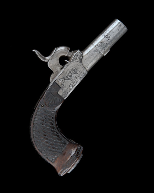 A 44-BORE PERCUSSION BOXLOCK POCKET PISTOL, no visible serial number,