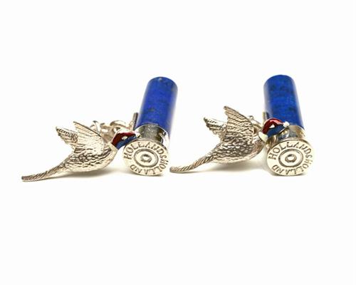 London sterling silver hallmarks, maker H&H, silver and lapis lazuli 'cartridges' with Holland & Holland headstamps, silver link chain, silver pheasants with polychromatic enamelled heads