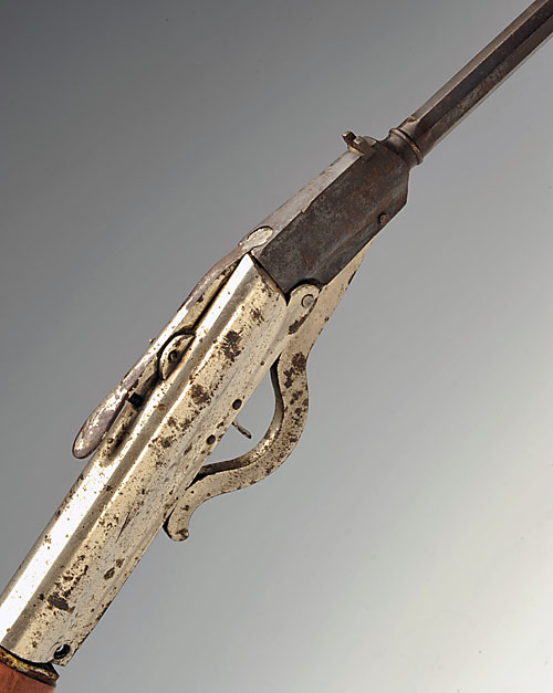 ** A .177 BREAK-BARREL AIR-RIFLE, SIGNED 'DRGM', MODEL 'GEM', serial no. 4591, circa 1930, with two-stage 18 1/2in. barrel, extended thumb-lever locking catch, nickel-plated air-chamber and walnut butt-stock, fair traces of plating, exposed iron surfaces worn (missing mainspring)